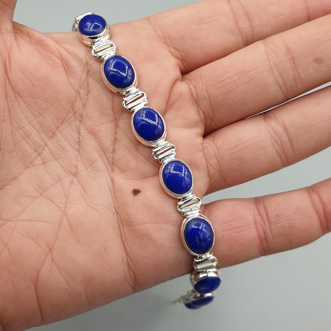 925 Sterling zilveren armband gezet met Lapis Lazuli.