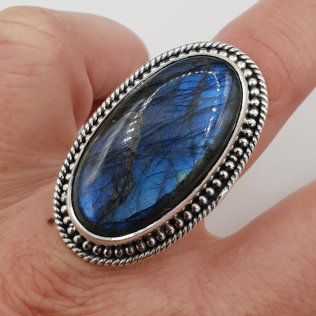 925 Sterling zilveren ring gezet met Labradoriet.