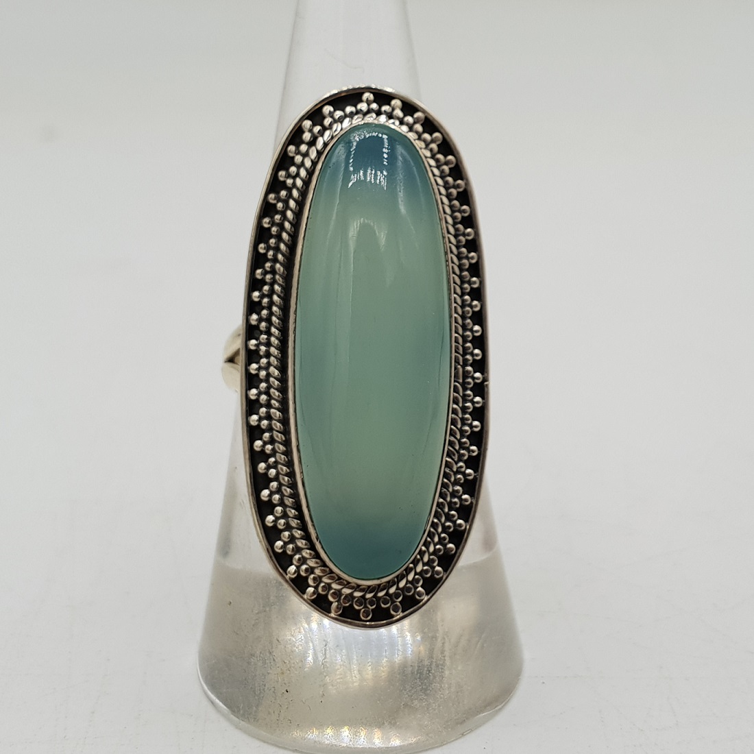 925 Sterling zilveren ring ovale aqua Chalcedoon 17 mm