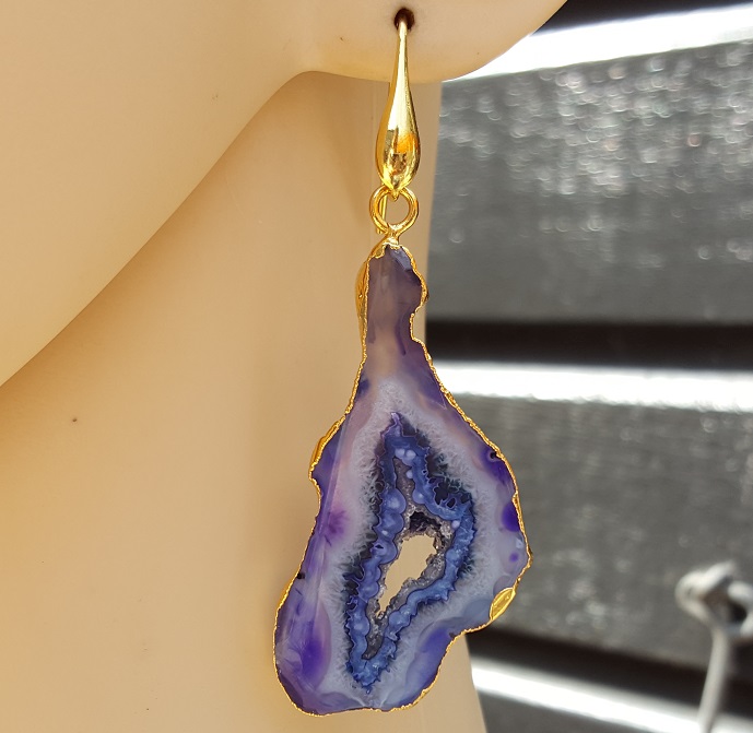 Goud vergulde oorbellen met paars / blauwe druzy Agaat