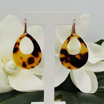 Mooie oorbellen met open druppel van schildpad resin.