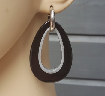 Creolen druppel hanger zwarte Buffelhoorn zilveren binnenkant