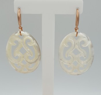 Mooie oorbellen met uitgesneden Parelmoer hanger.