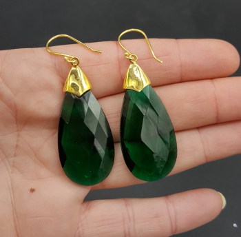 Goud vergulde oorbellen met grote Emerald groene quartz