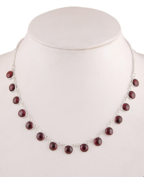 Mooie Sterling zilveren ketting gezet met cabochon geslepen Granaat.