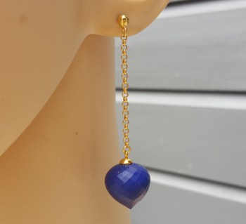 Goud vergulde creolen met Lapis Lazuli briolet