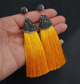 Vergulde tassel oorbellen van zwarte steentjes en druzy Titanium