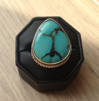 Zilveren edelsteen ring druppelvorm Turkoois bewerkte setting 19