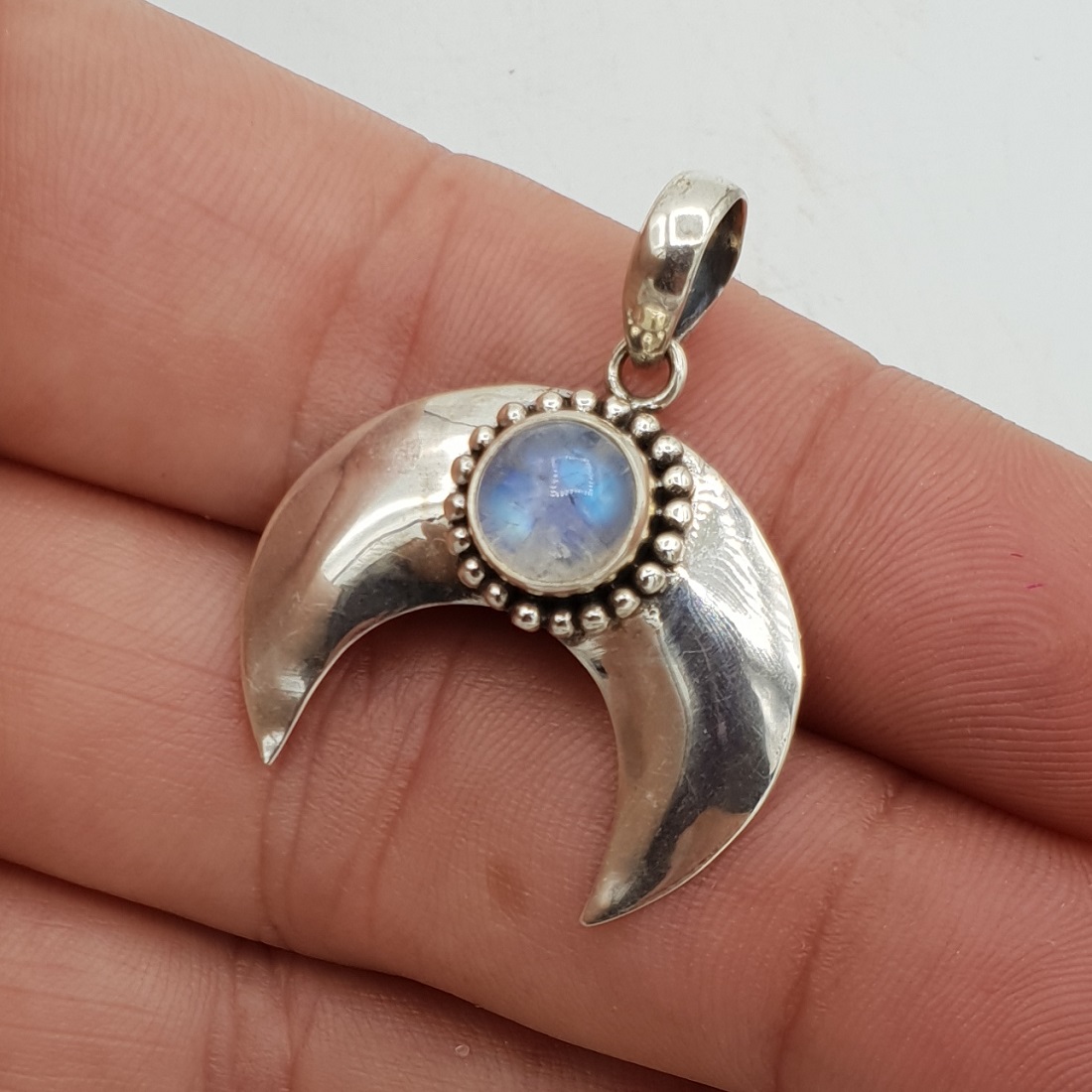 Zilveren halve maan / hoorn hanger gezet met regenboog Maansteen