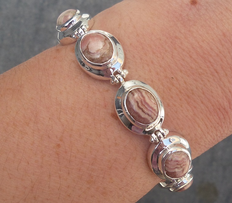 Mooie Sterling zilveren armband gezet met Rhodochrosiet.