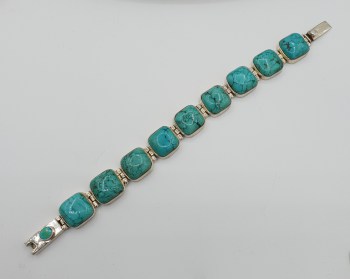 Zilveren armband gezet met vierkante Turkoois en schuifslot