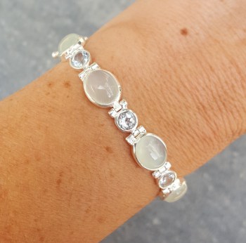 Zilveren armband met ovale aqua Chalcedoon en ronde Topazen