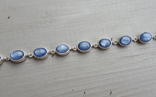 Zilveren armband met ovale cabochon Kyaniet schakels
