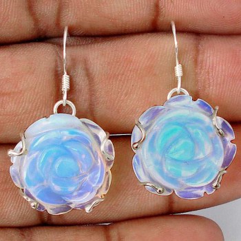 Mooie Sterling zilveren oorbellen met bloemen uit Opaliet gesneden. Deze zilveren oorbellen hebben een totale lengte van 3.5 cm.