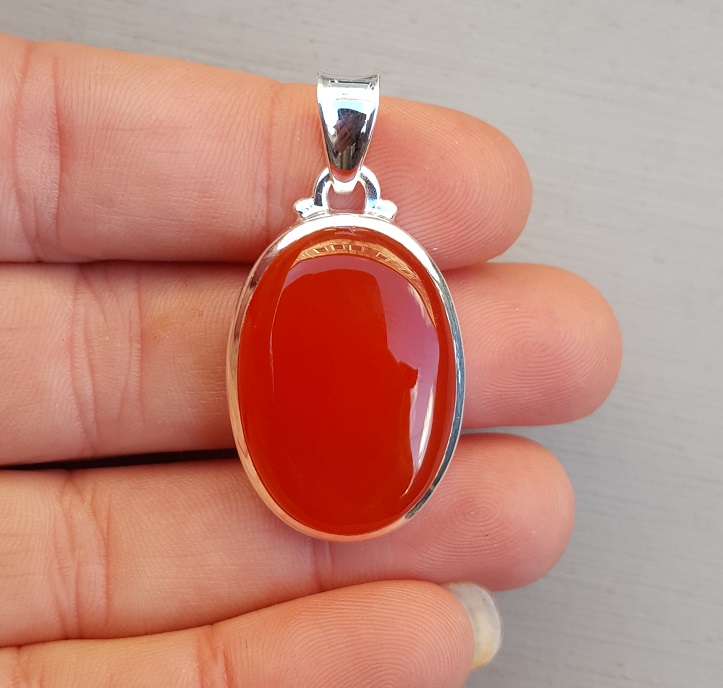Zilveren edelsteenhanger gezet met ovale Carneool