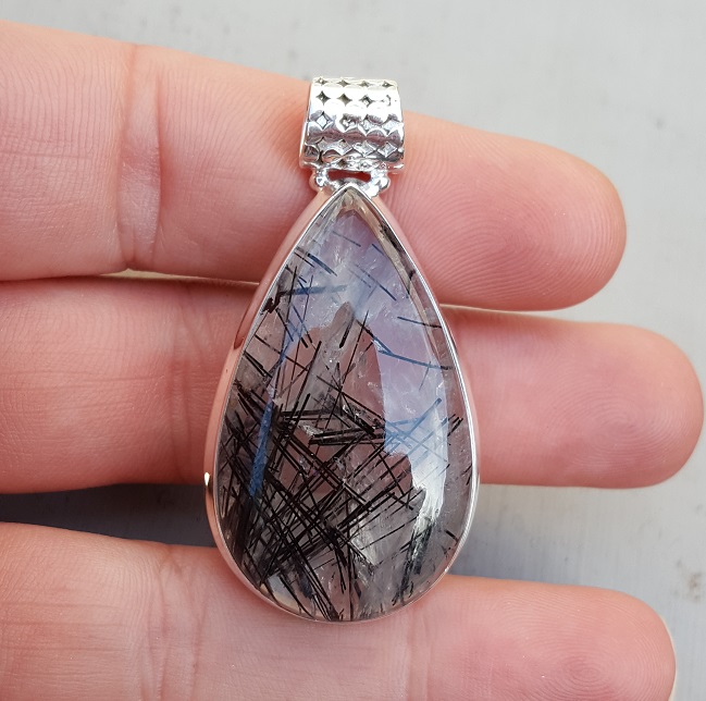 Zilveren hanger druppelvormige cabochon Toermalijnkwarts
