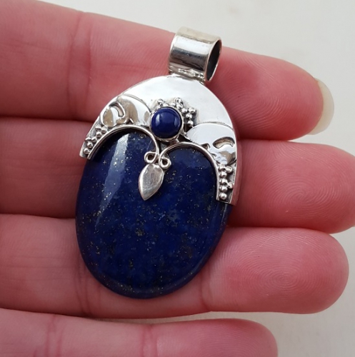 Mooie Sterling zilveren hanger gezet met Lapis Lazuli.
