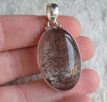 Zilveren hanger gezet met ovale Toermalijnkwarts