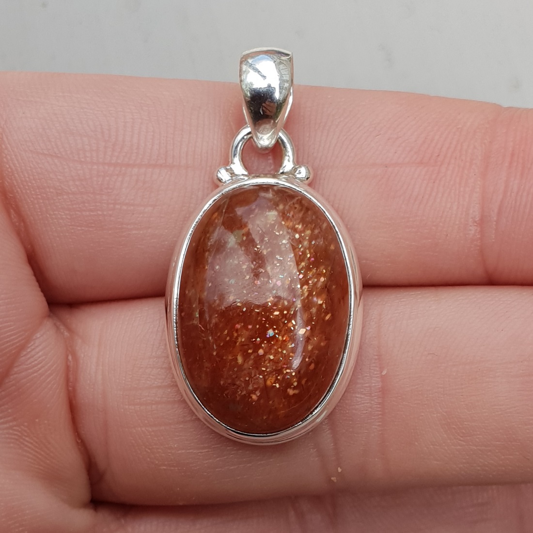 Zilveren hanger gezet met ovale Zonnesteen