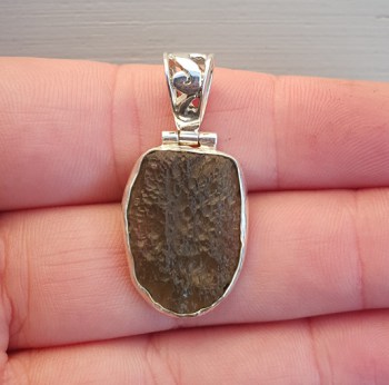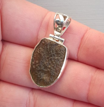 Zilveren hanger gezet met ruwe Moldaviet