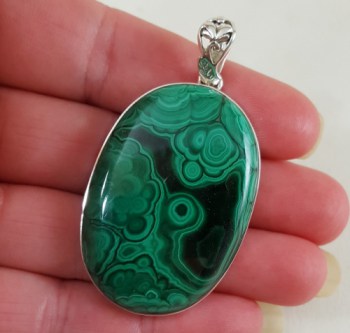 Zilveren hanger grote ovale cabochon geslepen Malachiet
