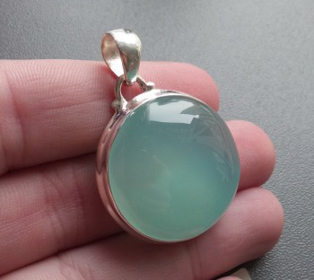Mooie Sterling zilveren hanger gezet met ronde aqua Chalcedoon.