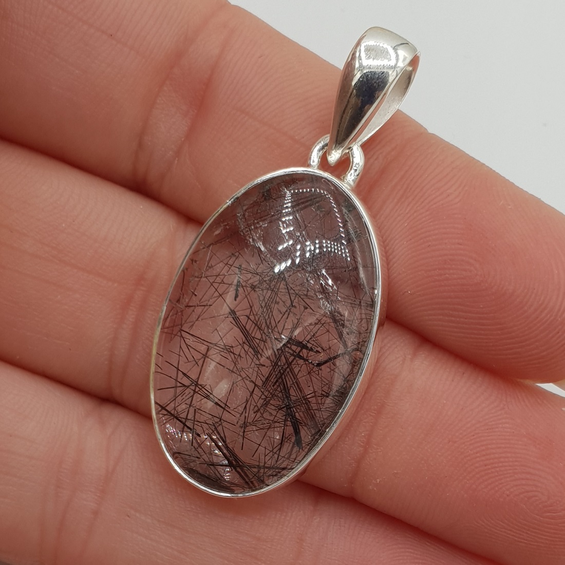 Zilveren hanger ovale cabochon Toermalijnkwarts