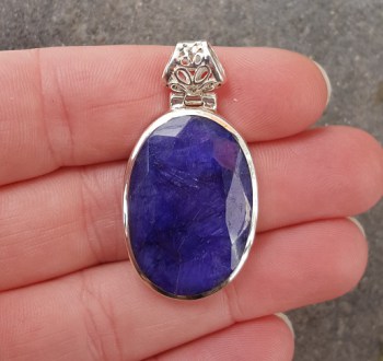 Mooie Sterling zilveren hanger gezet met Saffier.