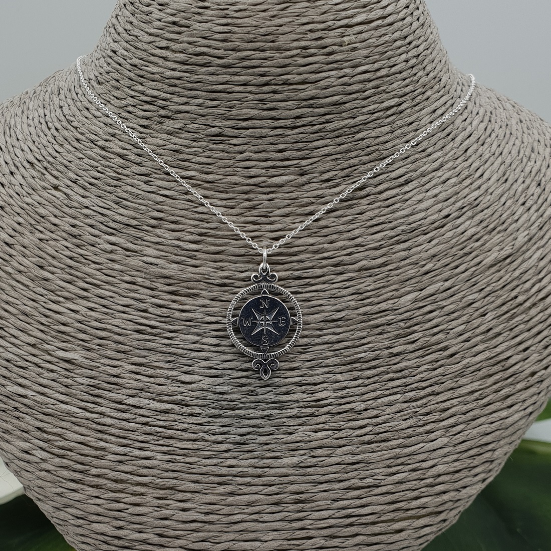 Zilveren ketting met kompas hanger