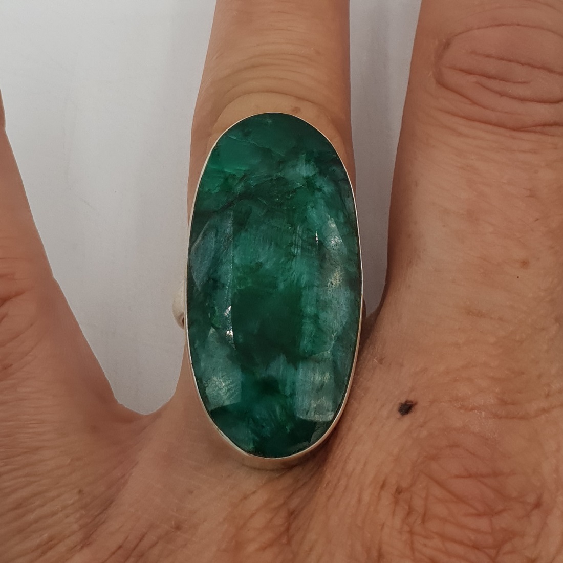 Zilveren ring gezet met grote ovale Emerald 17.3 mm