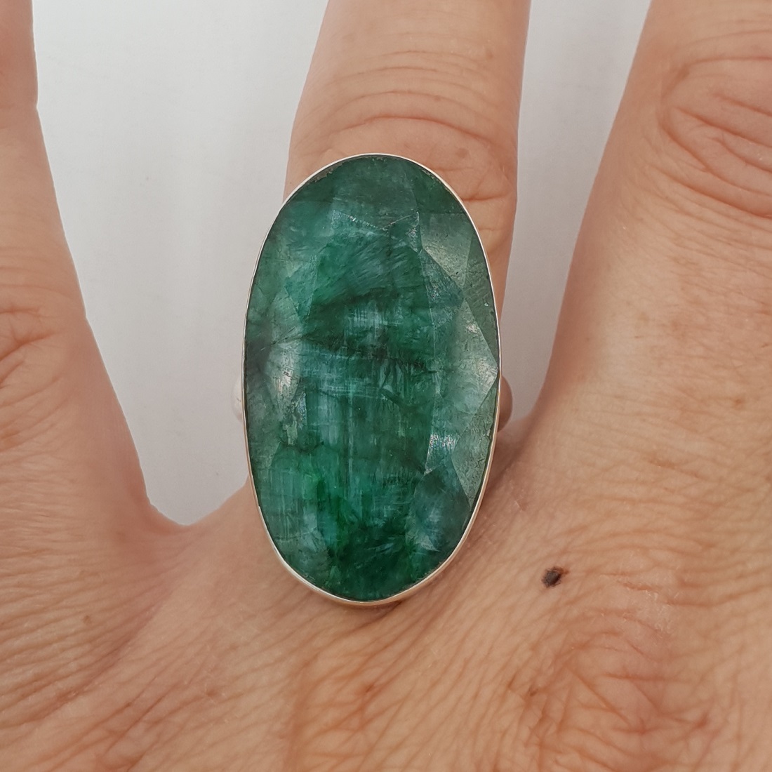 Zilveren ring gezet met grote ovale Emerald 17.7 mm