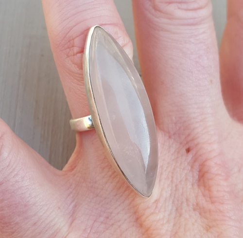 Zilveren ring gezet met marquise cabochon Rozenkwarts 16.5 mm
