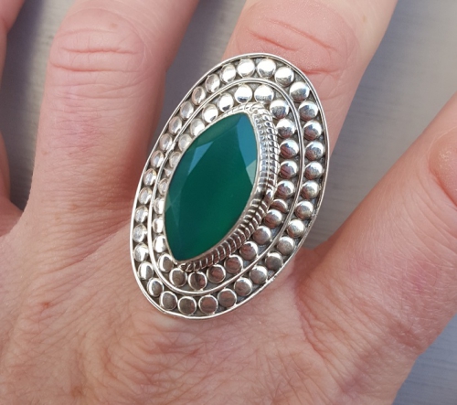 Mooie Sterling zilveren ring gezet met groene Onyx.