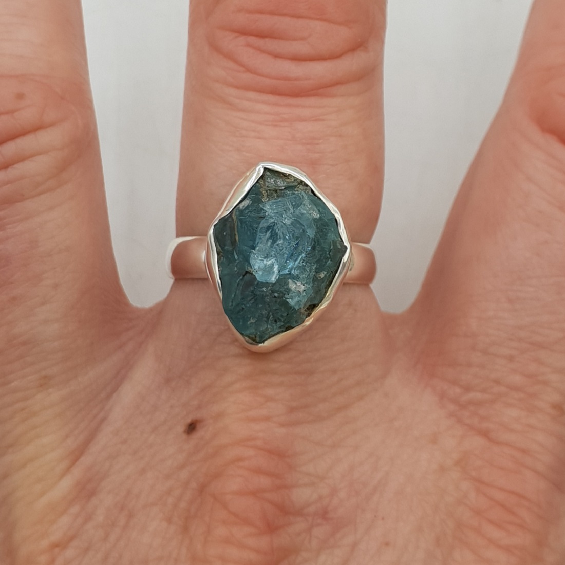 Mooie Sterling zilveren ring gezet met ruwe Apatiet.