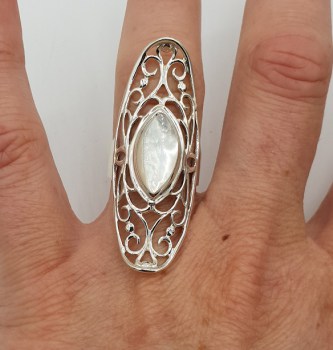 Zilveren ring marquise Parelmoer in open bewerkte setting 16.5 mm
