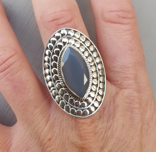 Zilveren ring met marquise grijze Chalcedoon verstelbaar