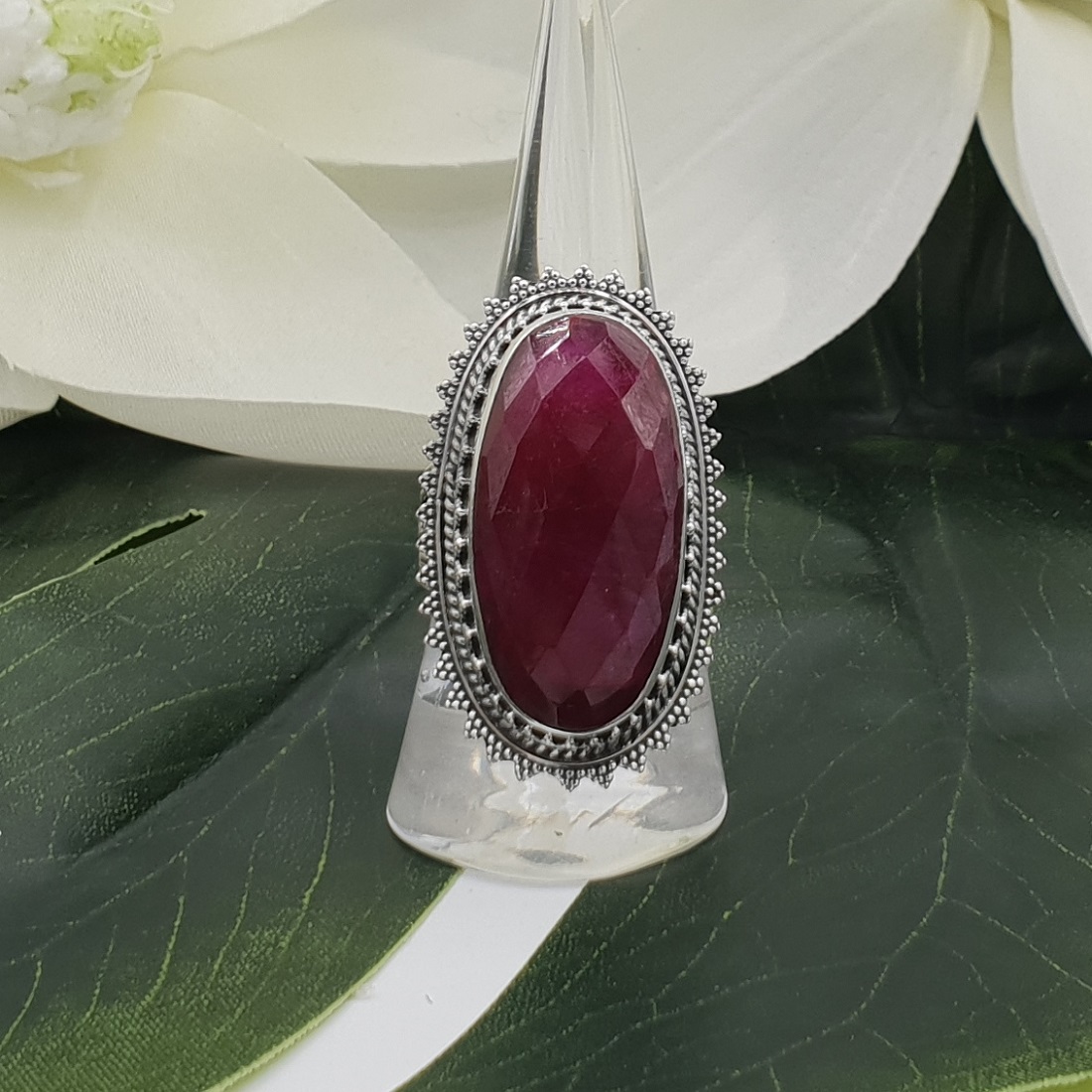 Zilveren ring met Robijn en bewerkte kop 18 mm