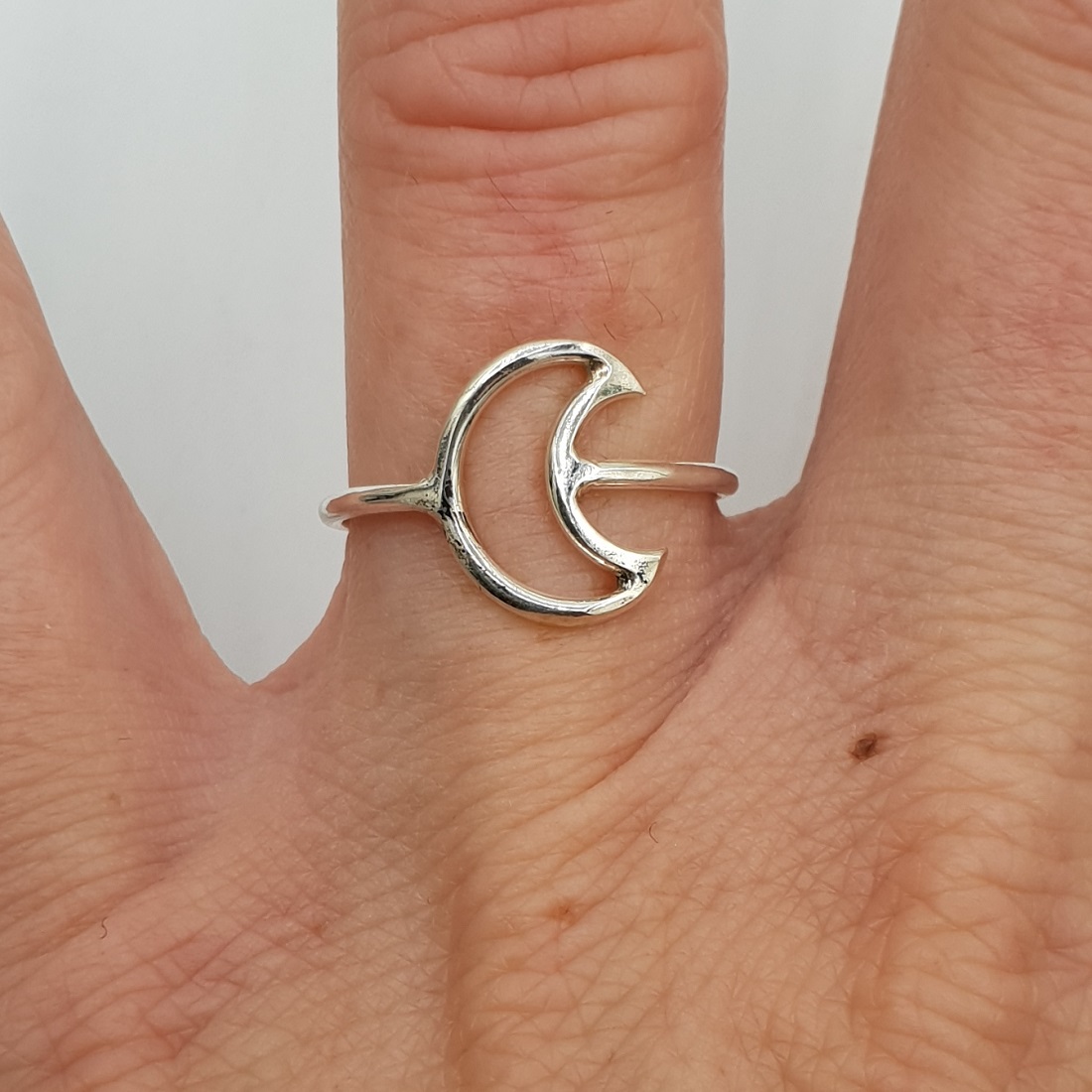 Mooie Sterling zilveren ring met open maan. Leverbaar in ring maat 16.5 mm.