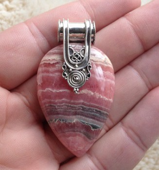 Zilveren hanger gezet met ovale facet geslepen roze Chalcedoon