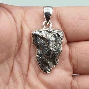 Zilveren hanger met driehoekige Rhodoniet in bewerkte setting