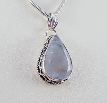 Zilveren hanger facet Maansteen gezet in bewerkte setting