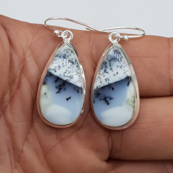 Zilveren oorbellen gezet met ronde Psilomelaan