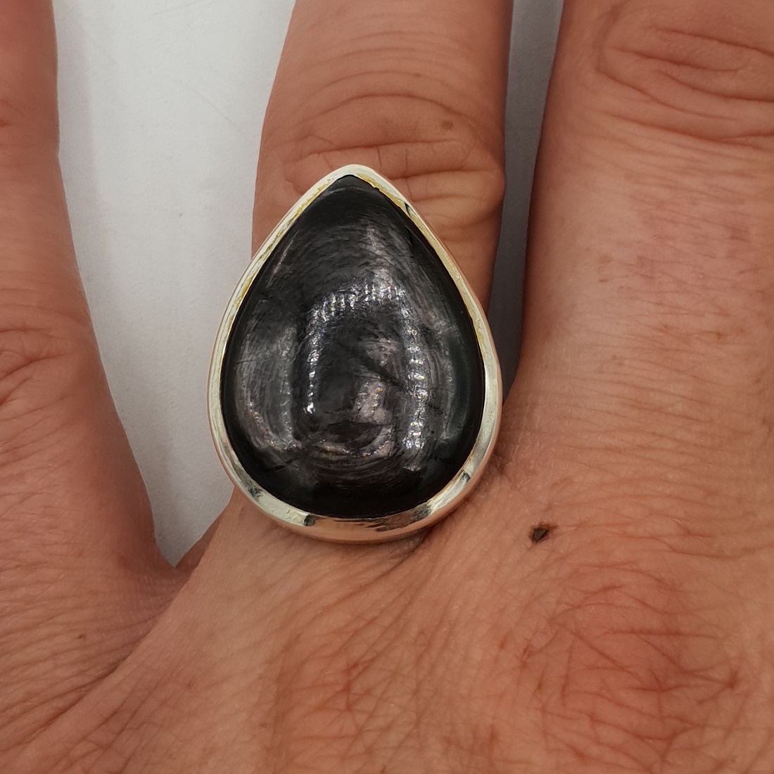 Zilveren ring gezet met druppelvormige Hypersteen 17 mm