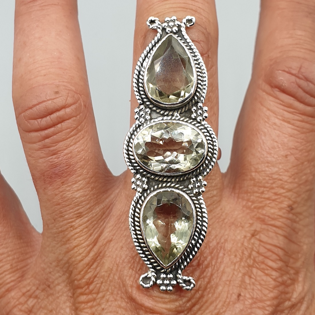 925 Sterling zilveren ring gezet met groene Amethist.