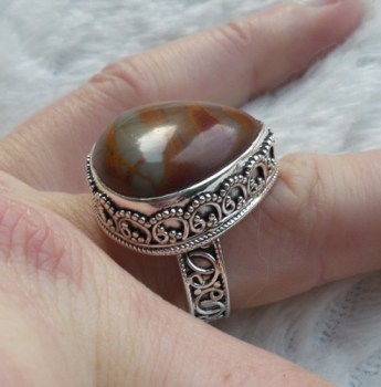 Mooie Sterling zilveren ring met Noreena Jaspis gezet in bewerkte setting.