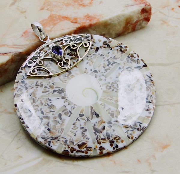 Mooie ronde Sterling zilveren schelpen hanger.