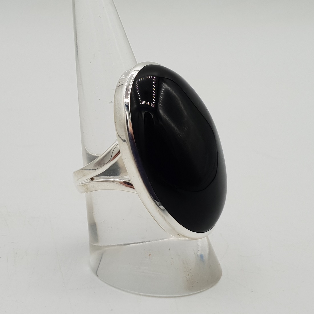 Zilveren ring met grote brede ovale zwarte Onyx 18.5 mm
